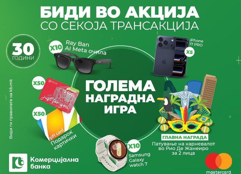 Комерцијална банка ги објави среќните добитници од наградната игра „Биди во акција со секоја трансакција“, организирана за корисниците на Mastercard картичките на Банката.