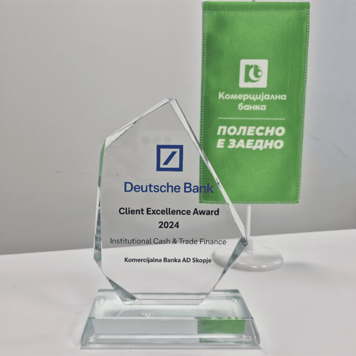 Наградата на Deutsche Bank покажува дека Комерцијална банка е призната како Банка која постојано постигнува извонредни резултати и демонстрира лидерство на пазарот.