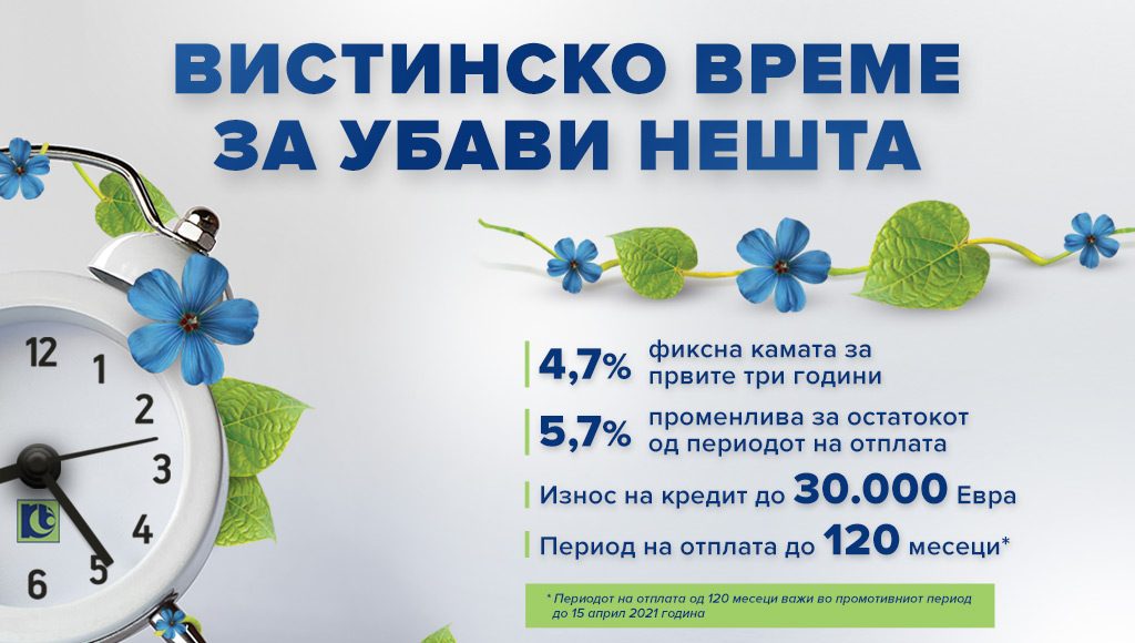 Станбениот кредит е со рок на отплата до 30 години и сега веќе е достапен со каматни стапки од 2,9% годишна, фиксна за првите 5 години, и 3,9% годишна, променлива за остатокот од периодот за отплата на кредитот. Втората опција е да се земе со годишни каматни стапки од 3%, фиксна за првите 10 години, и 3,9%, променлива за остатокот од периодот за отплата.