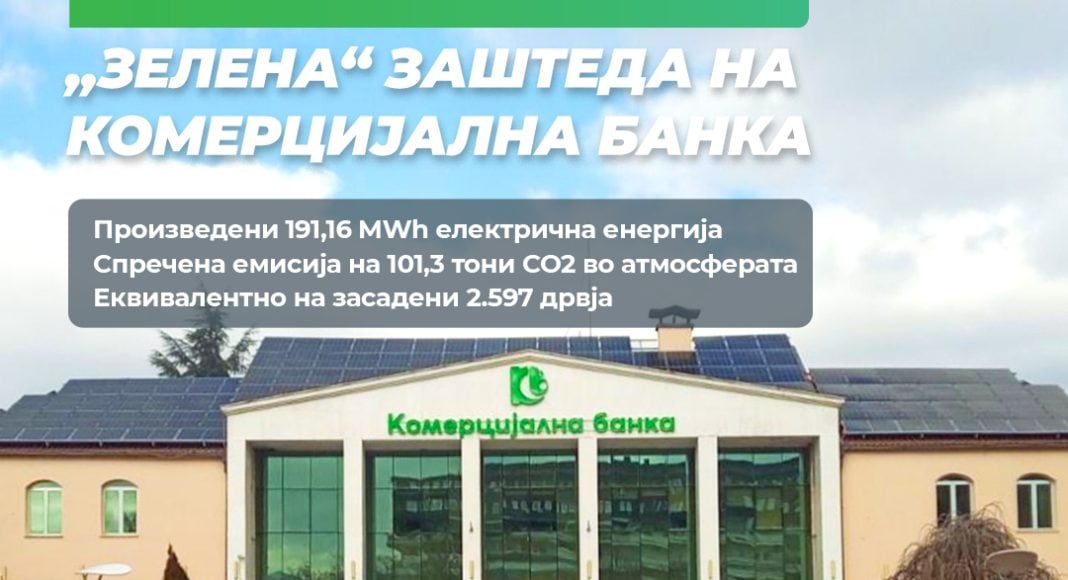 За 4 години, од кога започна со сопствено еко-производство на електрична енерија, истакнуваат од Комерцијална, Банката произведе 191,16 MWh електрична енергија и спречи емисија на 101,3 тони CO2 во атмосферата. Оваа „зелена“ заштеда на Комерцијална банка е еквивалентна на засадување на вкупно 2.597 дрвја.