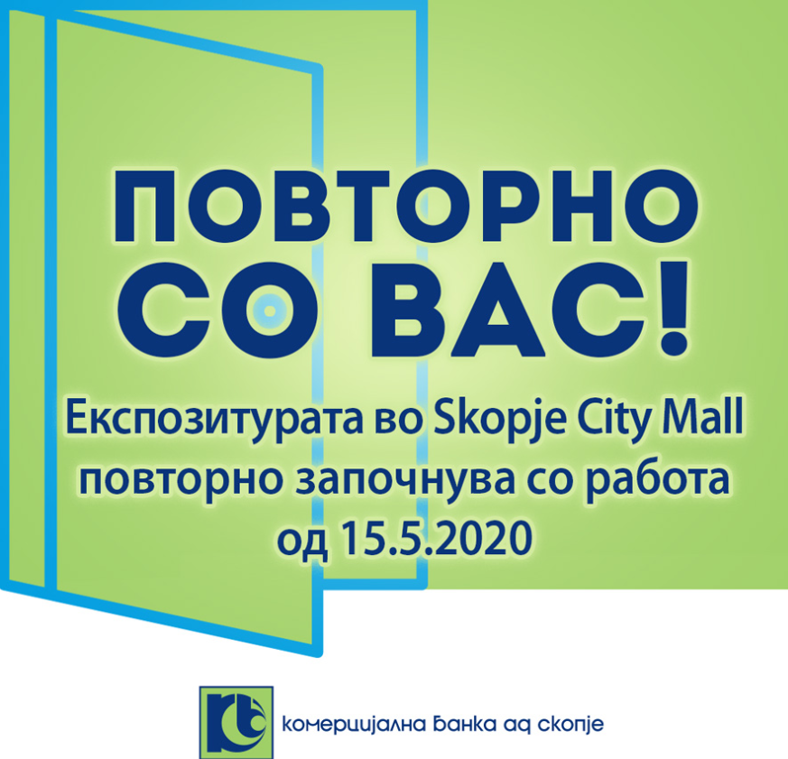 Од петок, 15 мај, започнува со работа експозитурата на Комерцијална банка АД Скопје во трговскиот центар Сити мол во Скопје, со работно време од 08 до 15 часот (од понеделник до петок).