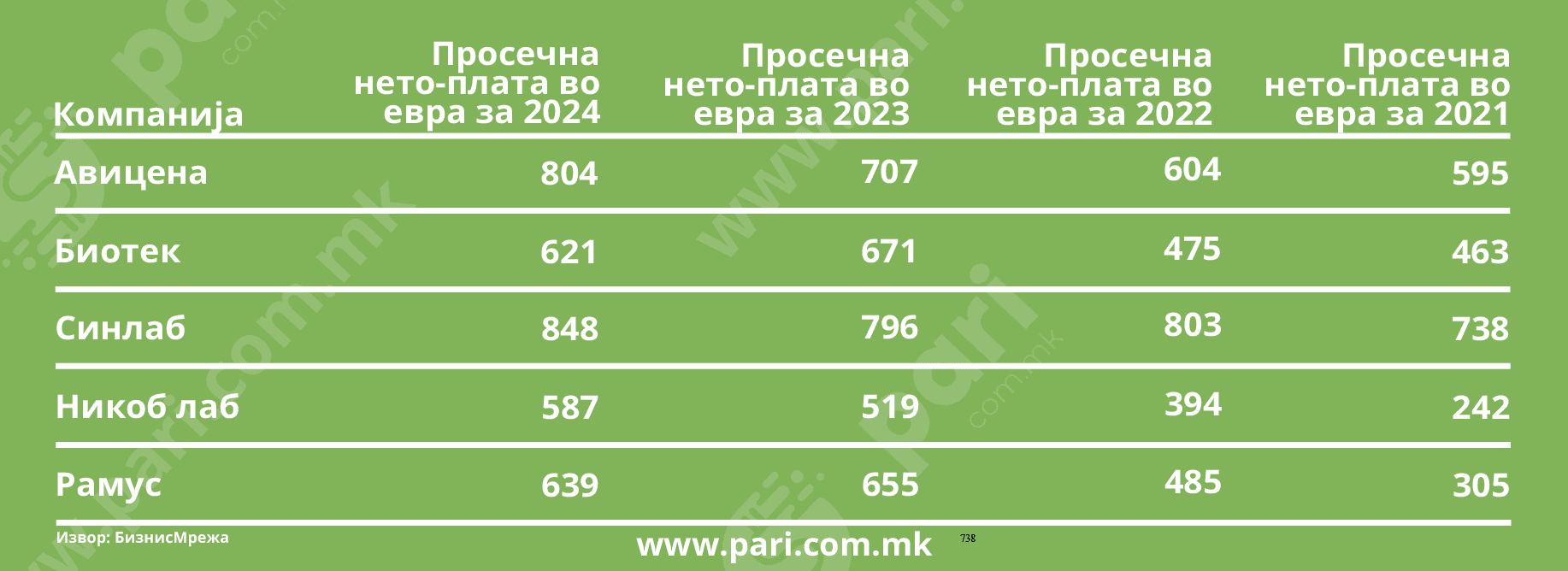 Втора по најголема просечна нето-плата е Авицена – 804 евра, и во споредба со преклани е зголемена за скоро 100 евра платата, но и заработката пораснала за 137% во однос на 2023 година.