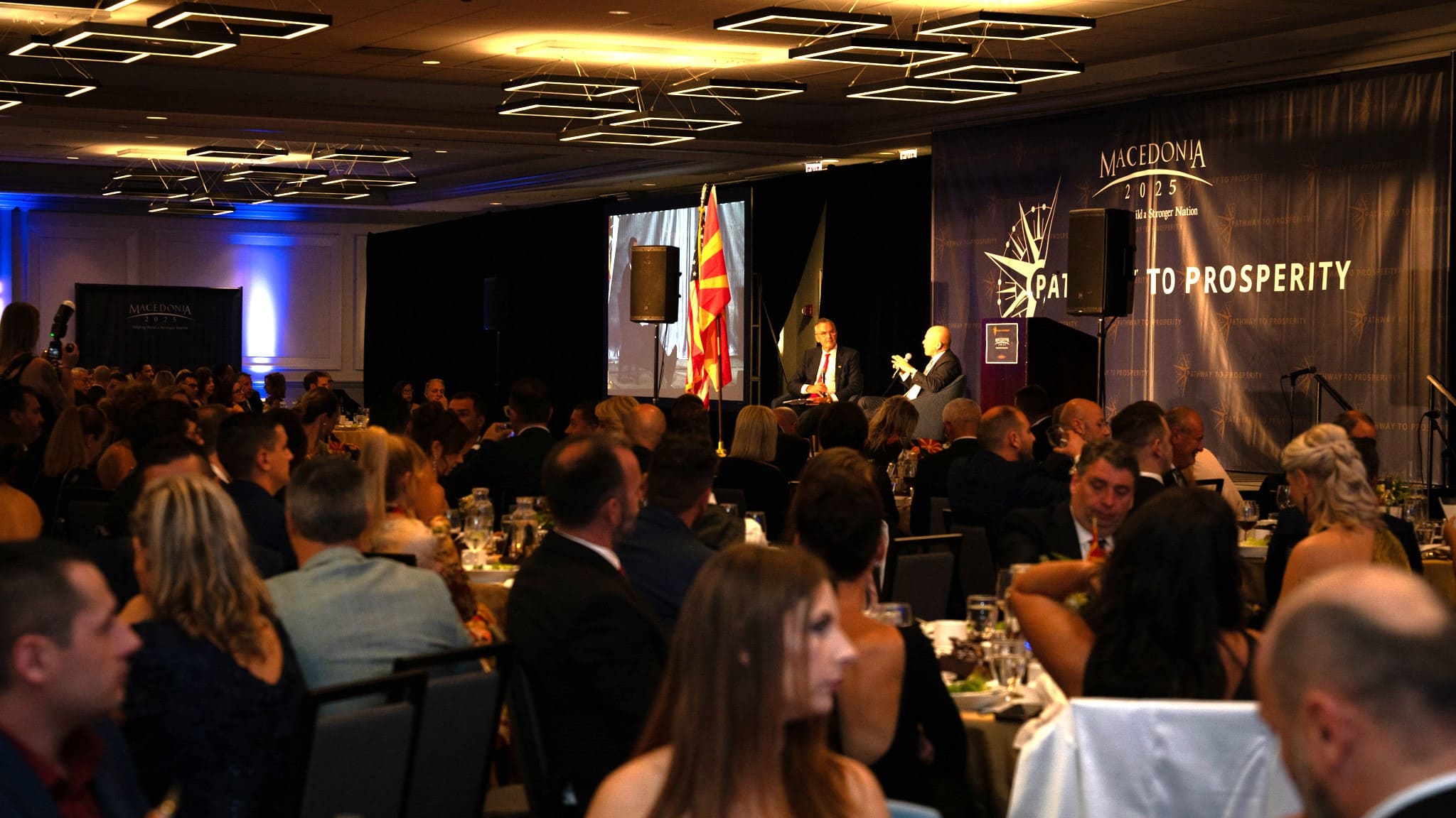 Претседателот Стево Пендаровски, кој е и долгогодишен партнер и поддржувач на активностите на Македонија 2025, беше главен гостин на Гала вечерата. Тој во рамките на своето обраќање го подвлече значењето на соработката и јакнењето на врските со дијаспората.