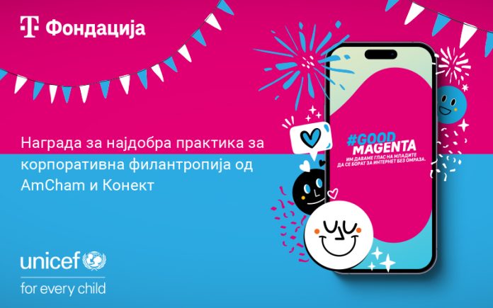 Македонски Телеком доби награда за својата посветеност во сферата на општествената одговорност за иницијативата „Заедно за интернет без омраза“. Наградената иницијатива е дел од партнерството помеѓу УНИЦЕФ и Фондацијата „Телеком за Македонија“ чијашто цел е да ги вклучи децата и младите во справувањето со еден од најголемите предизвици со кои се соочува нивната генерација – говорот на омраза на интернет. Престижната награда ја доделија Американската стопанска комора во Северна Македонија (AmCham) и Конект во рамките на проектот на УСАИД „Партнерства за донирање“.