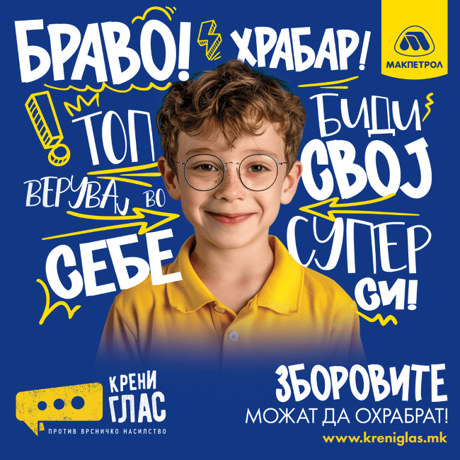 – Клучна пречка за решавањето на проблемот со врсничкото насилство е токму комуникацијата, односно отсуството од отворен разговор на оваа тема. Не само од децата и учениците како најзасегнати, туку и од нас, како родители чија улога е веројатно пресудна во нивното воспитување. Презадоволни сме што како резултат на нашата кампања сега значително повеќе се зборува за булингот. Тоа ни беше и една од најважните цели, но знајеќи колку овој проблем е комплексен, секако нема тука да застанеме. Продолжуваме со вклучување и на возрасните, односно родителите, како клучен фактор во препознавањето на случаите на врсничко насилство, а потоа и како најодговорни во подобрувањето на личната и на емотивната состојба на децата кои на некаков начин директно се соочиле со овој проблем – вели Марија Јосифовска-Спасовска, член на Управен одбор и директор во „Макпетрол“.