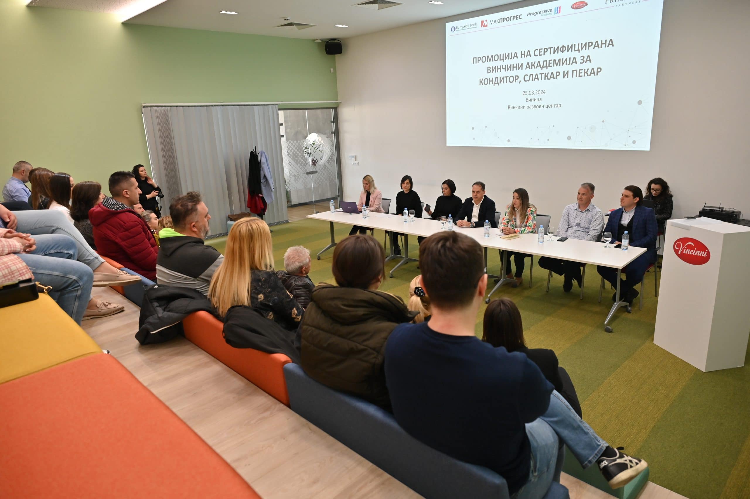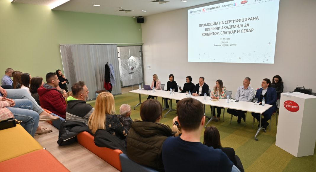 На 25ти март во организација на Макпрогрес и Фондацијата Прогресив Академија во просториите на Винчини развоен центар се одржа интерактивна дебата на која беа истакнати предизвиците за квалификувана работна сила со кои се соочува прехранбениот сектор. Пред присутните, компании, средните технички училишта и други релевантни организации, Генералниот директор на Макпроргрес Глигор Цветанов ја промовираше Винчини Академијата, првата сертифицирана програма за кондитор, слаткар и пекар во Македонија.