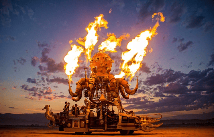 Некогаш се сметаше за андерграунд собир за боеми и слободни духови од сите шари, Burning Man оттогаш еволуираше во дестинација за влијателите на социјалните медиуми, познати личности и елитата на Силиконската долина. Во Burning Man, самите учесници ја дизајнираат и градат целата уметност., активности и настани