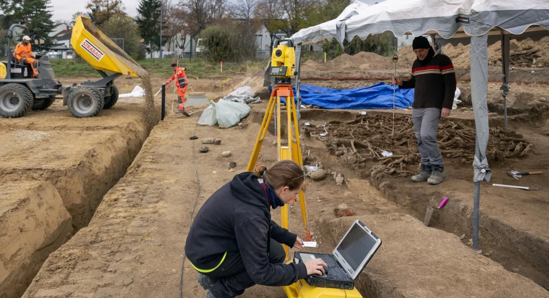 Градежните работници кои реновирале фудбалско игралиште во Виена наишле на мрачно парче историја: масовна гробница со скелетни остатоци за кои се верува дека се воини од Римската империја од 1 век .