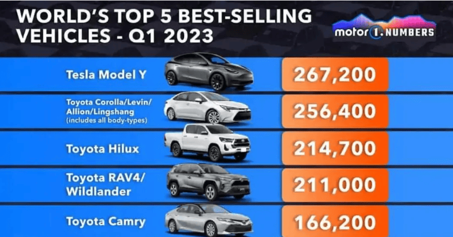 Минатата недела возилото на фабриката Тесла, Model Y, ја помина Toyota Corolla како најпродаван автомобил во светот, според The Driven, австралиски блог за автомобили. Цитирајќи податоци од JATO Dynamics, блогот вели дека во Q1, Model Y продаде 267.200 возила, надминувајќи ја продажбата на Toyota Corolla од 256.400.