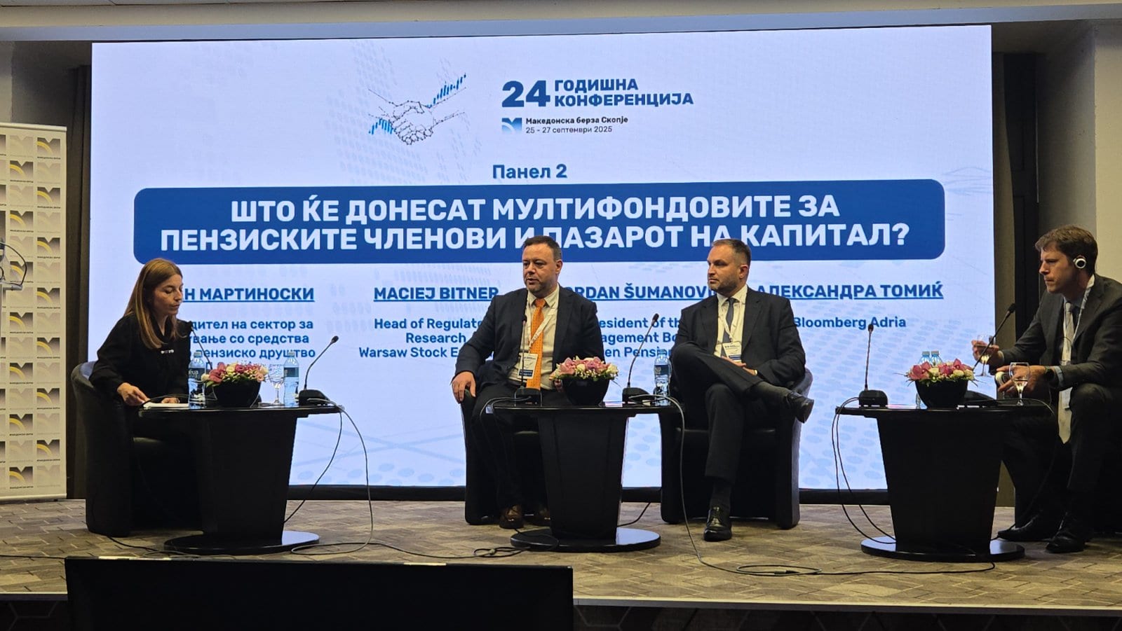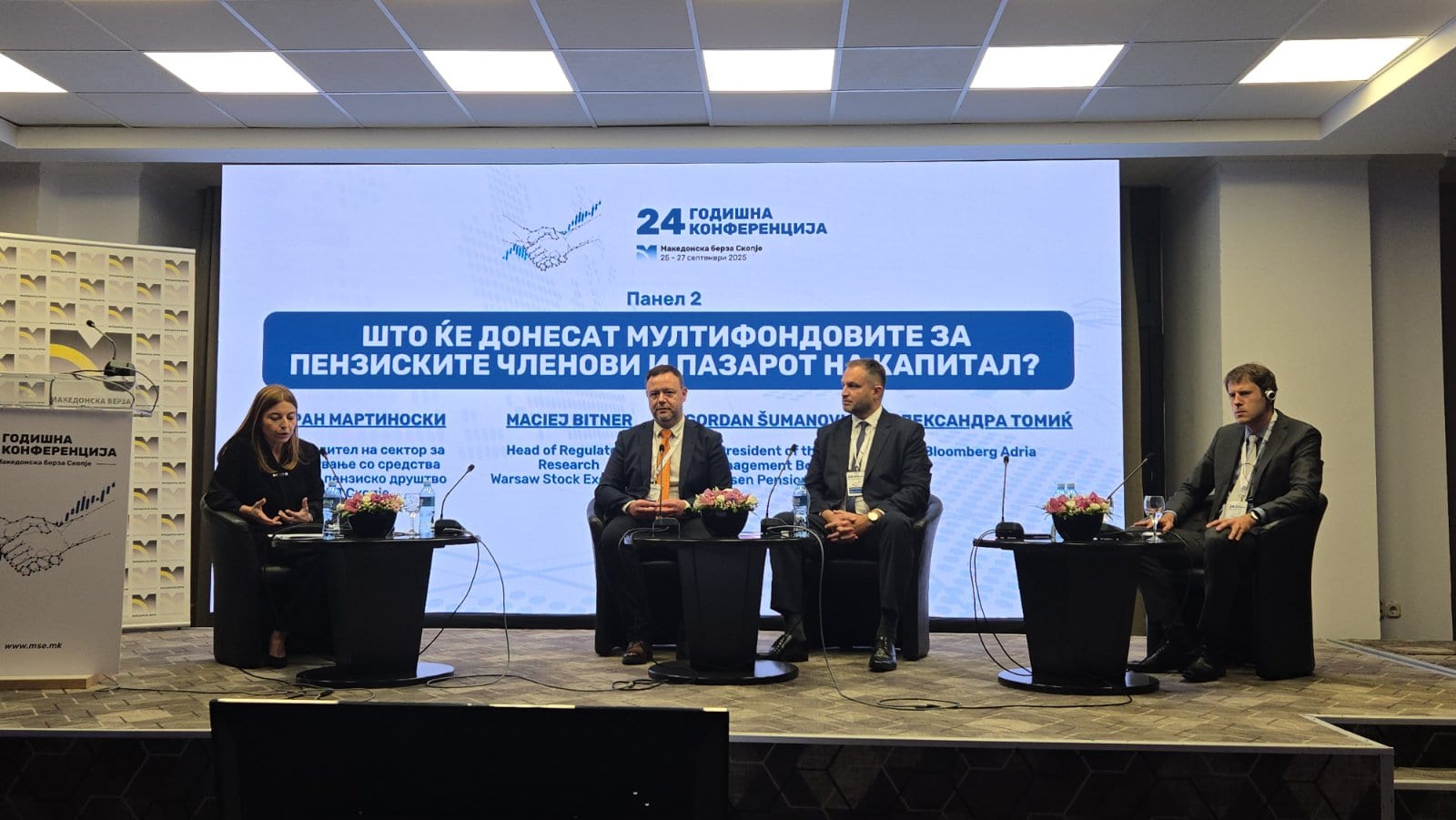 „Направената реформа на пензискиот систем е една од најуспешните во Македонија, но сега мора да преминеме на ново ниво, воведување на концептот мултифондови“, истакна Горан Мартиноски, раководител на сектор за управување со средства во КБ Прво пензиско друштво, на панел дискусијата на 24. Годишна конференција на Македонска берза во Охрид.