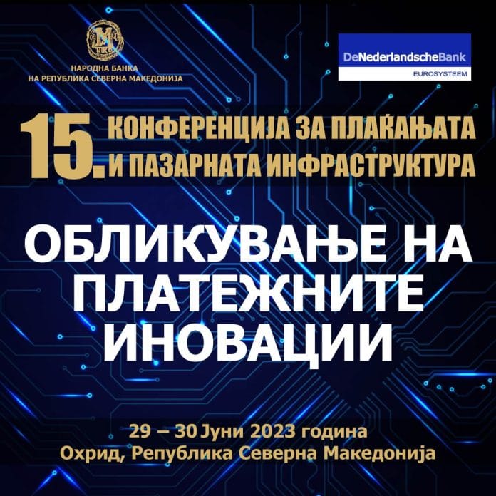 „Обликување на платежните иновации“ е насловот на Конференцијата за плаќањата и пазарната инфраструктура, која по петнаесетти пат ја организираат Народната банка на Република Македонија и Централната банка на Холандија, а ќе се одржи во Охрид од 29 до 30 јуни. Со ова ја продолжувааат долгогодишната традиција на заедничко согледување на можностите и предизвиците кај платежните услуги преку отворена и плодна дискусија.