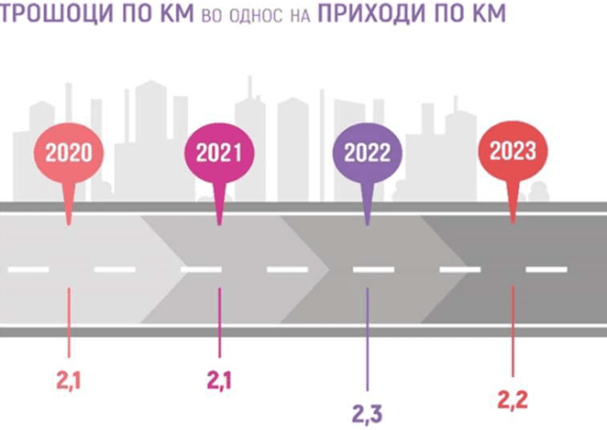 Секој изминат километар на ЈСП му носи загуба од еден денар. Ревизорите утврдиле дека коефициентот помеѓу трошокот и приходот по километар е 2:1. На два денари трошок по километар се остварува еден денар приход, што сериозно се одразува кај солвентноста и ликвидноста на претпријатието.