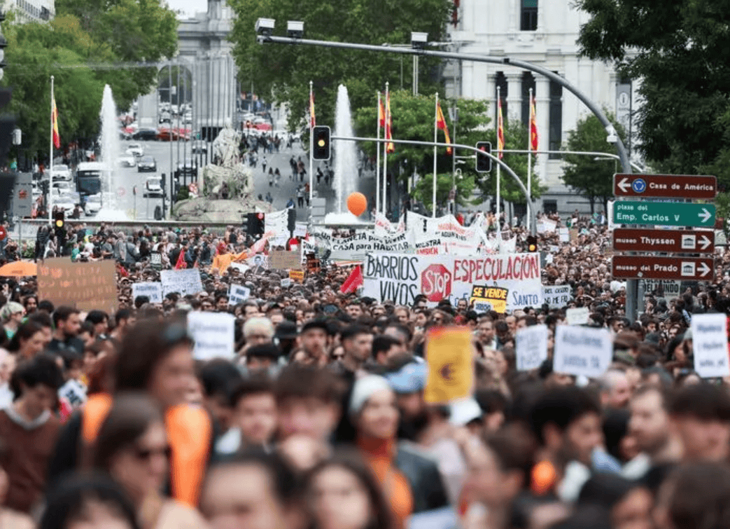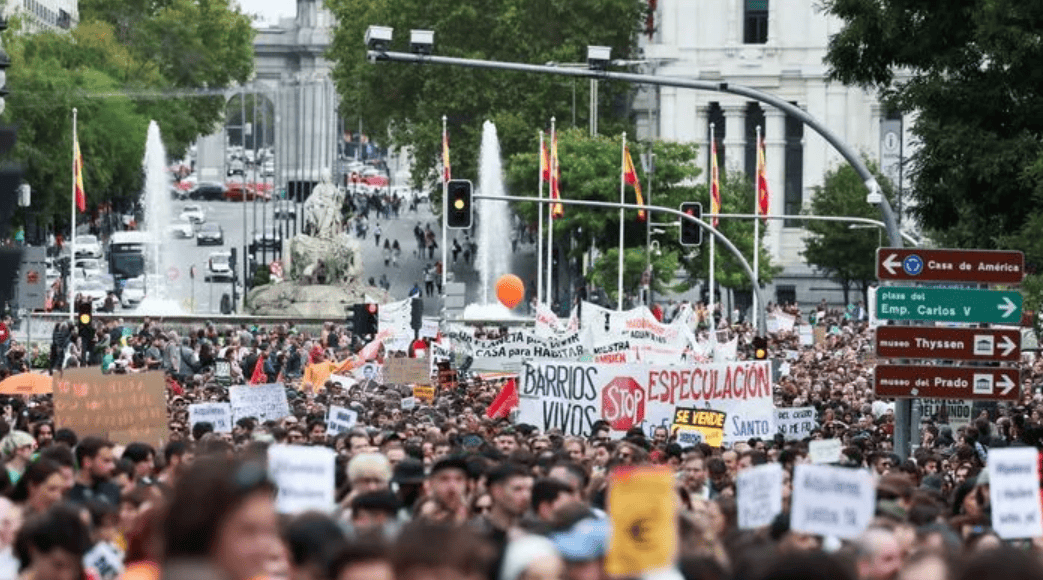 Под слоганот „Домувањето е право, а не бизнис“, илјадници луѓе денеска излегоа на улиците на Мадрид за да побараат попристапни услови за живот, додека во таа земја расте незадоволството поради високите цени за изнајмување станови, пренесува Ројтерс.