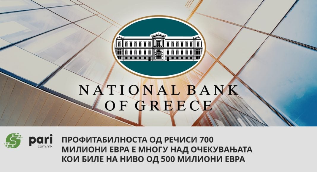 Зголемените приходи од камати и од провизии се основата врз која Националната банка на Грција постигнала извонредни резултати од работењето во текот на минатата година. Припишаната добивка по оданочување достигнала 1,1 милијарди евра, што претставува раст од 29 насто на годишно ниво. Основната профитабилност од речиси 700 милиони евра е многу над очекувањата кои биле на ниво од 500 милиони евра. А, во тој сегмент, во однос на 2021 година, натфрлувањето е од високи 57 проценти.