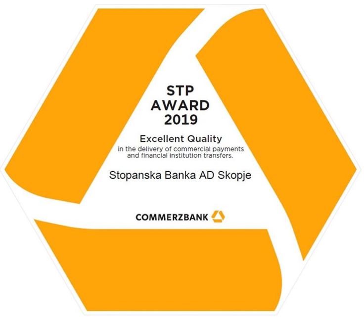 Стопанска банка АД – Скопје е добитник на наградата од „Комерцбанк“, за 2019 година, за одличен квалитет при обработката на комерцијалните плаќања и финансиските трансфери.