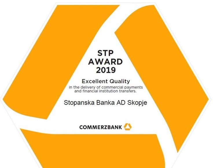 Стопанска банка АД – Скопје е добитник на наградата од „Комерцбанк“, за 2019 година, за одличен квалитет при обработката на комерцијалните плаќања и финансиските трансфери.