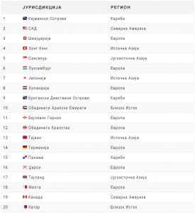 Еве ги најдобрите 20 даночни раеви во светот, рангирани од англиската невладина организација “Мрежа за даночна правда” според индексот на финансиска тајна во 2020 година (ССИ).