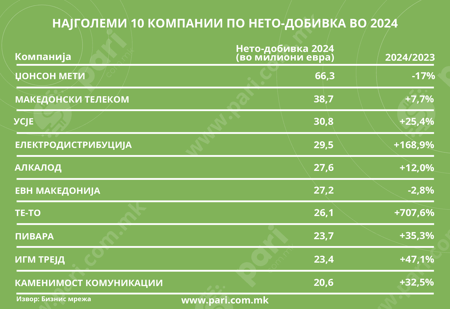 Денес е лесно да се заработува ако се има производ без кој живеењето е тешко. Затоа, на самиот врв, меѓу 100-те најголеми компании по добивка за 2024 година се наоѓаат компании што се поврзани со снабдување со електрична енергија, телекомуникациски услуги, парно греење, покажува анализата на Пари во соработка со БизнисМрежа.