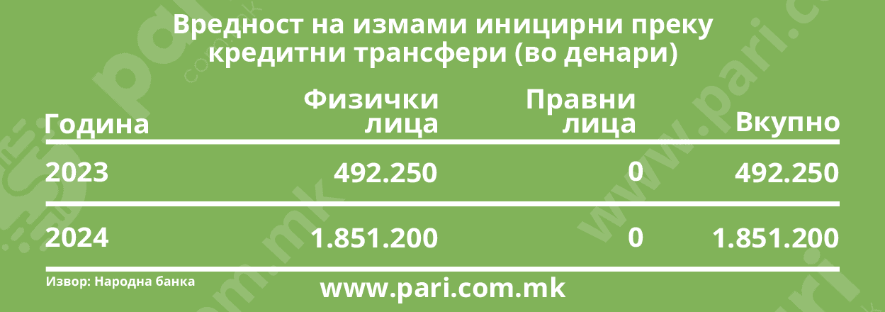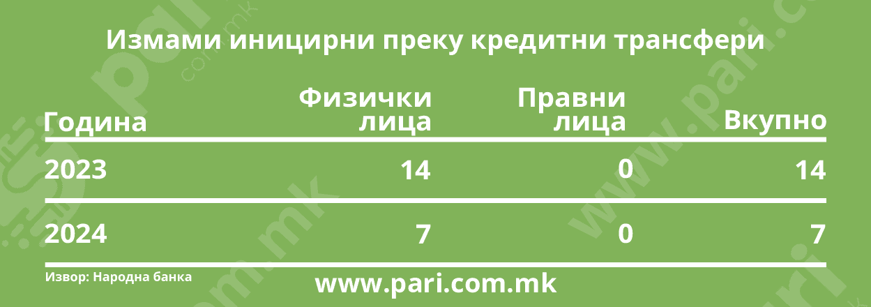 Интересно е тоа што најмалку се мамат клиентите преку кредитните трансфери, и тоа исклучиво во електронската варијанта. Во хартиена форма – нема измами.
