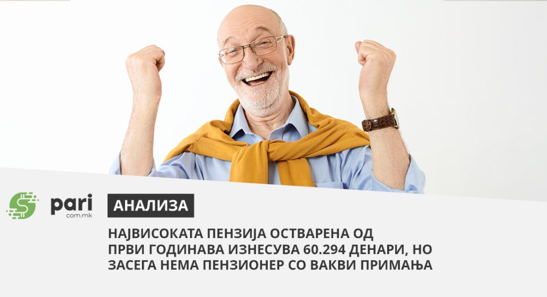 Највисоката пензија на граѓаните што ќе заминат од пензија од први годинава ќе достигне над 1.000 евра или поточно 60.294 денари. ПИОМ пресметал, но засега ниту еден пензионер не може да се пофали со толку висока пензија па графите на ПИОМ се празни.