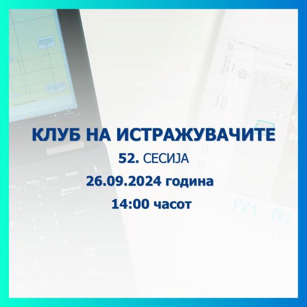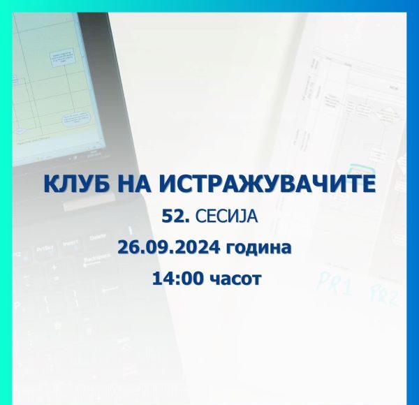 Народната банка објавува повик за пријавување трудови за 52. сесија на Клубот на истражувачите, којашто ќе се одржи на 26 септември 2024 година (четврток), со почеток во 14:00 часот, во просториите на Народната банка. Заинтересираните истражувачи може да се пријават со доставување на материјалот на е-адресата: [email protected], најдоцна до 18 септември 2024 година (среда).