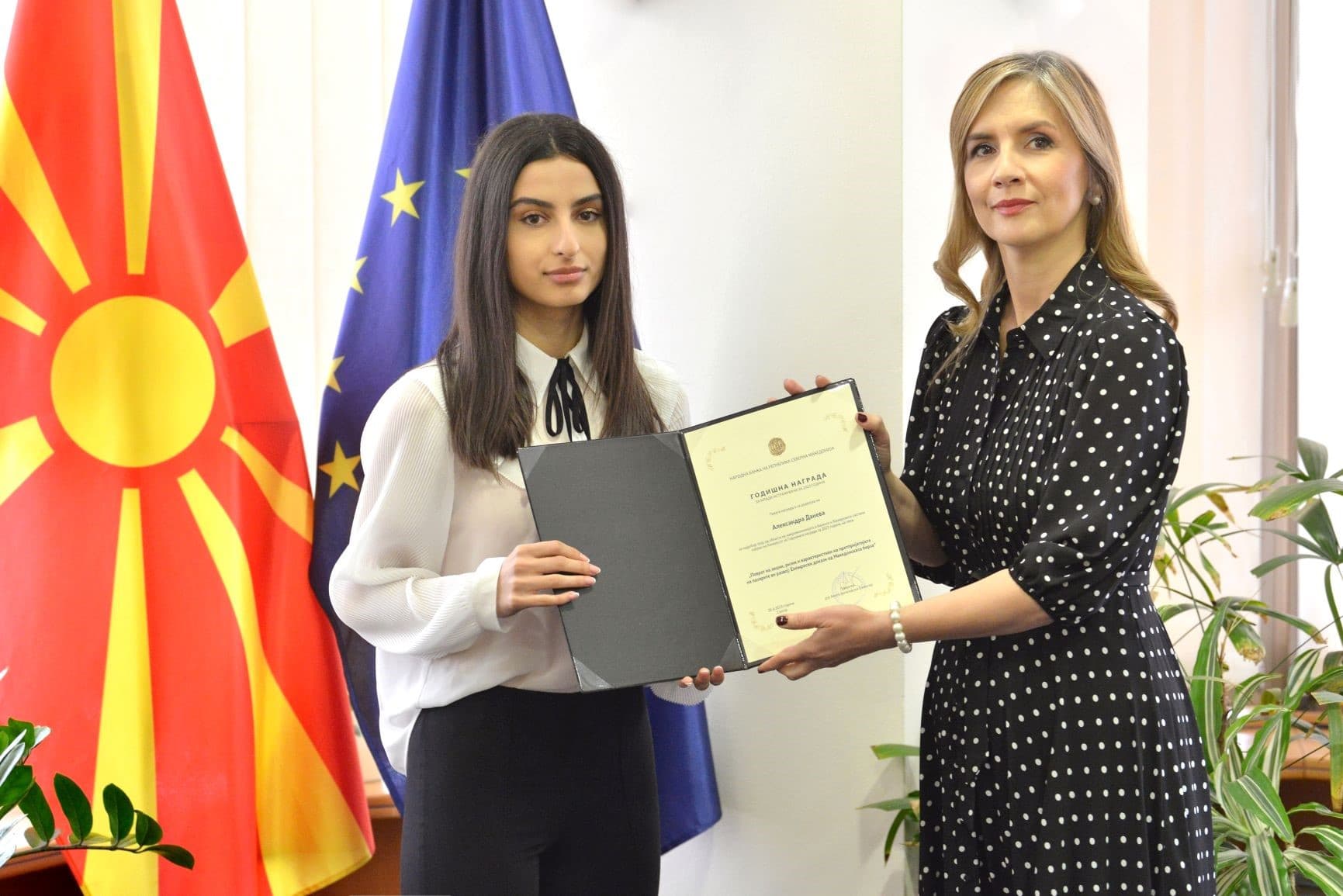 Народната банка постојано дава поддршка за истражувачката активност и придонесува за унапредување на знаењето и поттикнување на научната и креативната мисла, што е основа и за осмислување и водење здрави економски политики. Нашата цел е да ги поддржиме младите економисти да создаваат нови идеи и иновативни решенија за предизвиците во економијата. Истовремено, го нагласуваме значењето на научната мисла кај младите лица кои се идни носители на политиките – истакна гувернерката Анита Ангеловска-Бежоска при доделувањето на плакетата за прва награда за најдобар труд од областа на макроекономијата и банкарството.