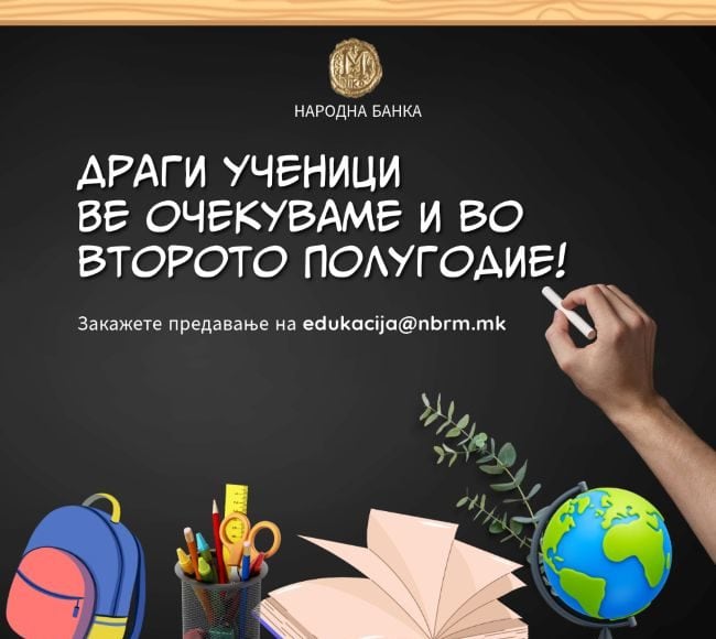 Со почетокот на второто полугодие од учебната година, започнува и новиот циклус предавања на Народната банка од областа на финансиската едукација. Во современите услови на динамичен финансиски систем, финансиската едукација станува сѐ попотребна за сите граѓани. Токму затоа, финансиската едукација е дел од стратегиските цели на Народната банка, којашто преку обезбедување непрекинатост во процесот и постојано зголемување на опфатот на населението од различни целни групи, цели кон унапредување на финансиската писменост во земјава.