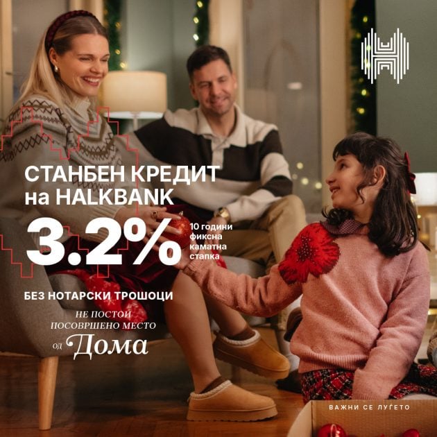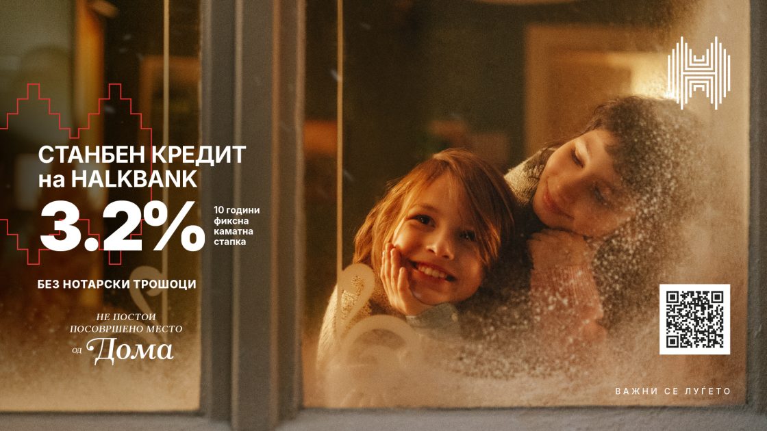 Станбениот кредит на Халкбанк е креиран да се прилагоди на животниот ритам, со рок на отплата до 30 години. Каматните стапки започнуваат од 3,2% фиксна каматна стапка за првите 10 години, провизијата за обработка изнесува 0%, а кредитот е достапен и со можност за грејс период до 12 месеци. Износот може да достигне до 400.000 евра, со минимум 10% учество, доколку станува збор за купување на прв стан.