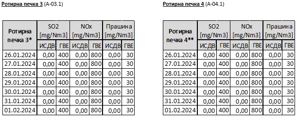 ** Ротирна печка бр.4 не работи од 17.01.2024 поради редовни ремонтни активности