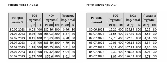 • Емисиите од работата на Цементарница УСЈЕ постојано се под граничните вредности определени со Закон