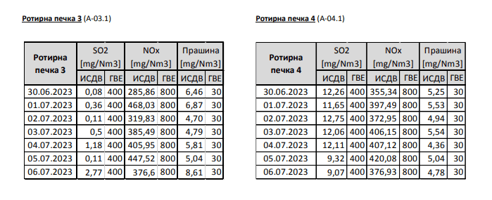 ⦁ Емисиите од работата на Цементарница УСЈЕ постојано се под граничните вредности определени со Закон