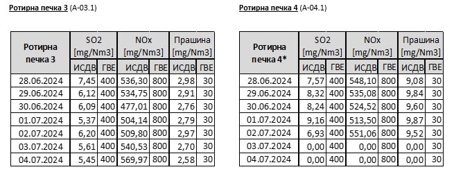 * Ротирна печка 4 е исклучена на 03.07.2024 поради планирани активности