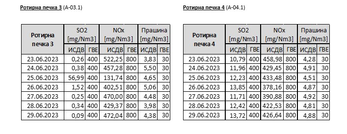 - Емисиите од работата на Цементарница УСЈЕ постојано се под граничните вредности определени со Закон