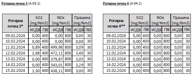 ** Ротирна печка бр.4 не работи од 17.01.2024 поради редовни ремонтни активности