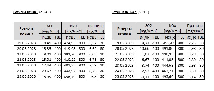 Неделен извештај за измерени средно-дневни вредности на емисии од главните емисиони точки во Цементарница УСЈЕ