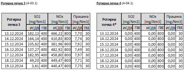 * Ротирна печка бр. 4 е исклучена на 07.12.2024 поради ремонтни активности