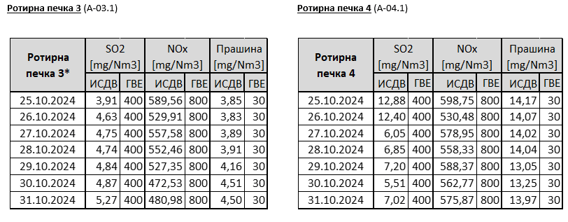 * Ротирна печка 3 е пуштена во работа на 25.10.2024