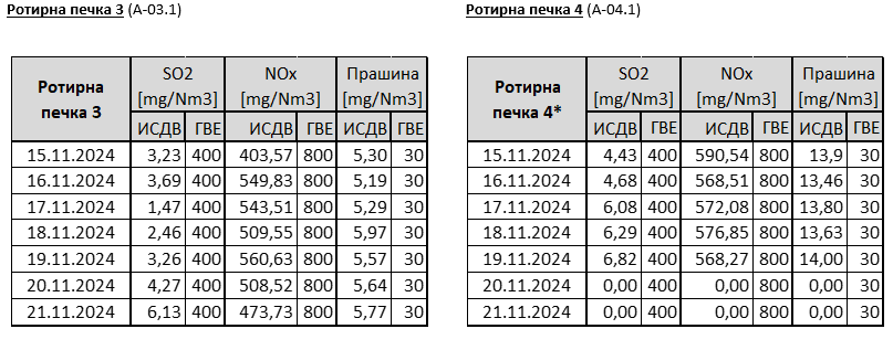 * Работата на Ротирна печка бр. 4 е запрена на 19.11.2024