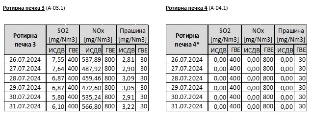 * Ротирна печка 4 е исклучена на 03.07.2024 поради планиран застој