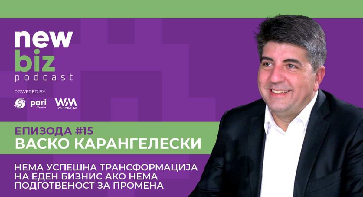 Но, на прашањето што било пресудно за еден бизнис да успее да се трансформира во успешно претприемништво најбрзо што може, Карангелески одговара: „Пресудно прво е поставувањето на целта, подготвеноста за промена и мислам дека 50% е мајндсет, не ги минимизирам вештините, тие се многу значајни…Ако зборуваш за промена треба да имаш стратегија, цел каде сакаш да стигнеш, треба да ги имаш системите на располагање, некаков буџет за да ги постигнеш вештините. Ова од организациска перспектива. Меѓутоа мајндсетот на лидерот и на тимот, лидерот не мора да е сопственикот или извршниот директор туку некој кој влече најсилно во тој тим, сочинува 50% од условите, 30% се системи и процеси, додека 20% се вештините“.
