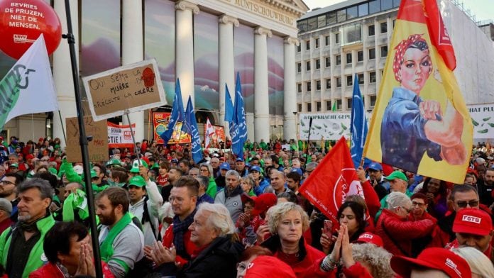Во јуни, околу 70.000 белгиски работници исто така излегоа на улиците, протестирајќи поради острите скокови во трошоците за живот.