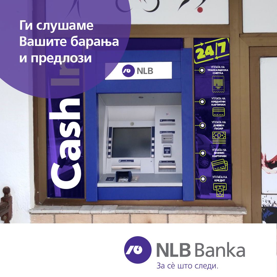 Согласно барањата и предлозите на клиентите на НЛБ Банка, за поставување на банкомат на потегот од населба Даме Груев (ГЕГЕ) до с. Волково, Ве известуваме дека НЛБ Банка постави Cash in банкомат на ул. 100, бр. 10-А, 1000 Скопје – излог на Евротип во Волково.