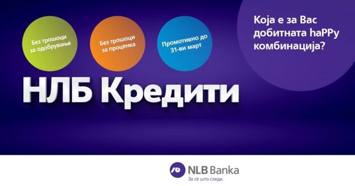 НЛБ Банка води промотивна кампања за сите кредити за физички лица во период од 1.03.2021 до 31.03.2021 година. Во промотивниот период сите кредити за физички лица ќе се нудат без трошоци за одобрување, додека станбените и хипотекарните кредити ќе се одобруваат и без трошоци за проценка на имот.