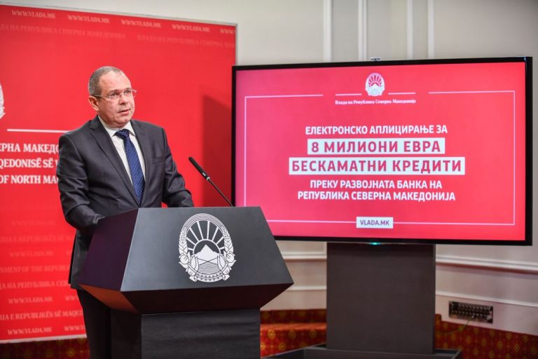 Од среда, 29-ти април микро, малите и средни компании од сите дејности, погодени од КОВИД-19 кризата, ќе можат да аплицираат за 8 милиони евра бескаматни кредити, преку Развојната банка на Северна Македонија. Кредитите од оваа линија ќе бидат до 90.000 евра, а условите и постапката за аплицирање се олеснети. На јавната презентација на новата бескаматна линија, која е антикризна мерка за справување со коронакризата, присуствуваа министерката за финансии Нина Ангеловска, директорот на Развојната банка, Кире Наумов, директорката на Централниот регистар Марија Бошковска Јанковски и преку видео изјава амбасадорката на Јапонија во земјава, Кеико Ханеда.