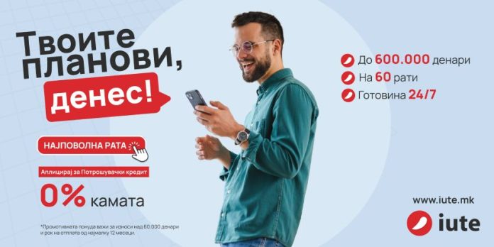 Иуте Македонија промотивно воведе нов кредитен продукт, со 0% камата и најповолна рата на пазарот.
