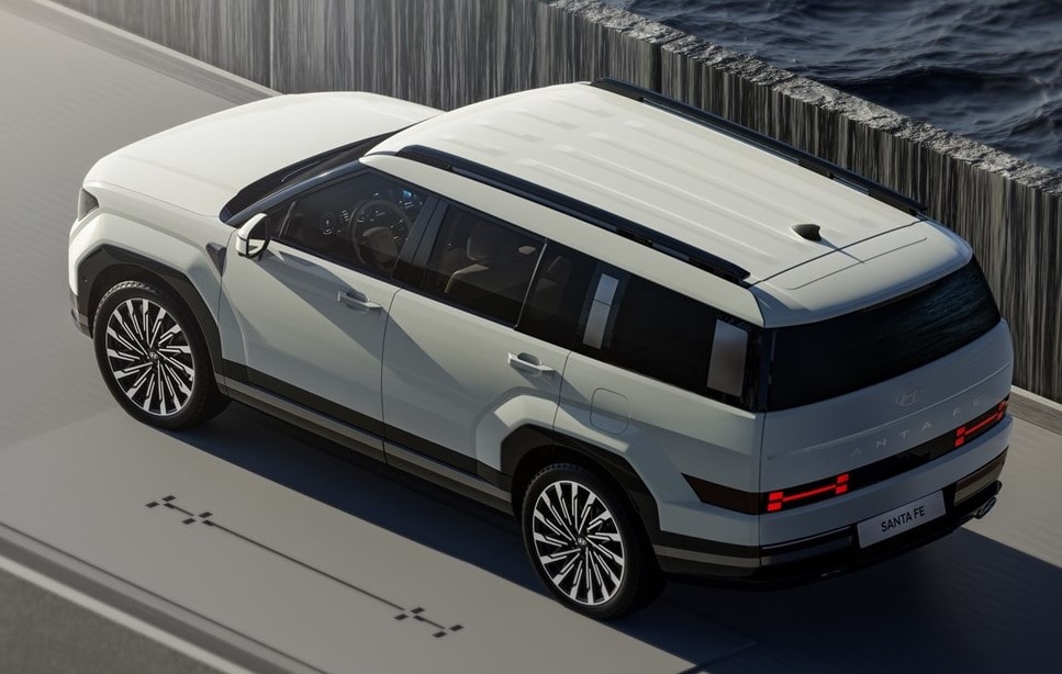 Новиот Santa Fe зазеде драматична дизајнерска насока од нејзината последна соодветна генерација лансирана во 2018 година, со многу пообличен изглед и дизајнерски елементи од другите неодамнешни автомобили на Hyundai. Тркалата, на пример, се многу слични на оние што се гледаат на најновиот Grandeur достапен во Кореја, додека DRL-овите со H-шаблон речиси повторуваат некои од дизајните слични на пиксели што се гледаат на Ioniq 5 и Ioniq 6.