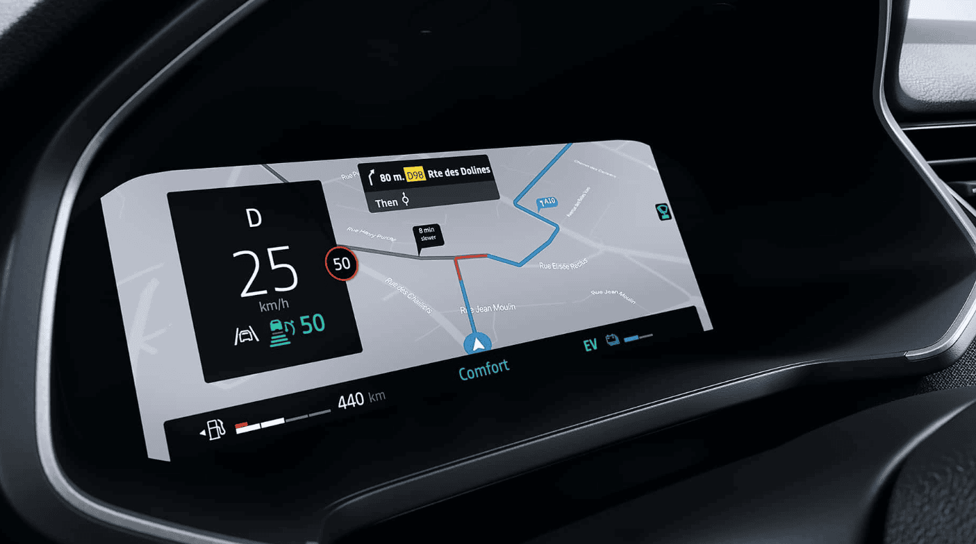 Алтернативно, можете да изберете хибриден погон со атмосферски 1,6-литарски бензински мотор кој произведува 94 КС и работи заедно со електричен мотор од 36 киловати, генератор за стартер со висок напон од 18 kW и батерија од 1,2 kWh. Има комбинирана моќност од 145 КС и секогаш стартува во чисто електричен режим. Рено тврди дека 80 отсто од возењето во град се одвива без користење на мотор со согорување.