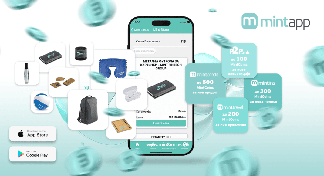 Секоја Ваша интеракција со Mint Credit, Mint Ins, и Mint Travel (сите достапни на едно место преку Mint App), како и P2P.mk Ви носи Mint Coins – поени за лојалност кои ги собирате без никаква дополнителна обврска. Потоа, во Mint Store, тие поени можете даги искористите за некој од многуте достапни производи.