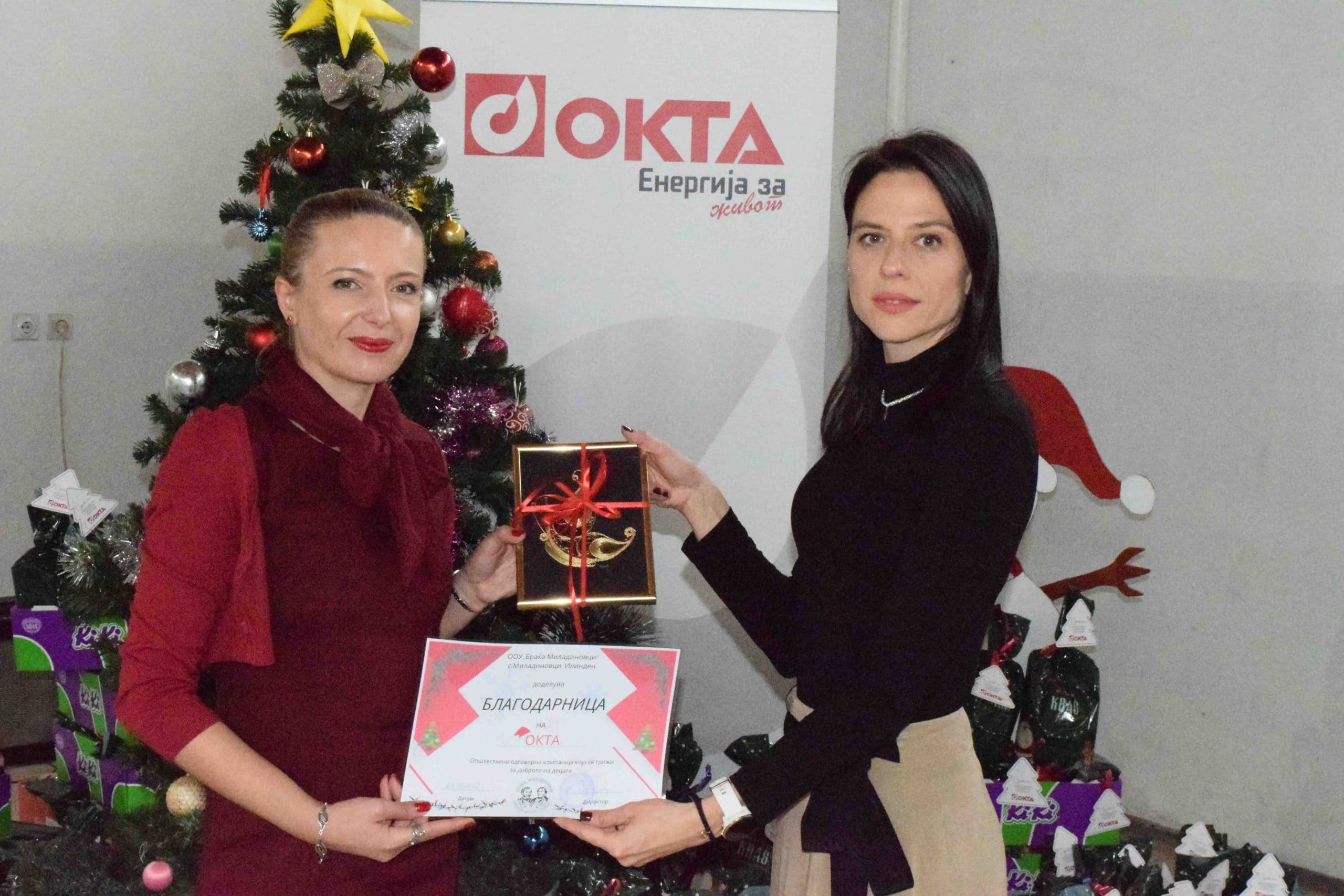 ОКТА и годинава ги израдува децата од основните училишта кои се наоѓаат во близина на седиштето на компанијата во општина Илинден. Сите ученици од прво до деветто одделение во централното општинско основно училиште „Браќа Миладиновци“ во Миладиновци и во подрачните училишта во селата Мршевци и Текија добија новогодишни пакетчиња, донација од ОКТА.