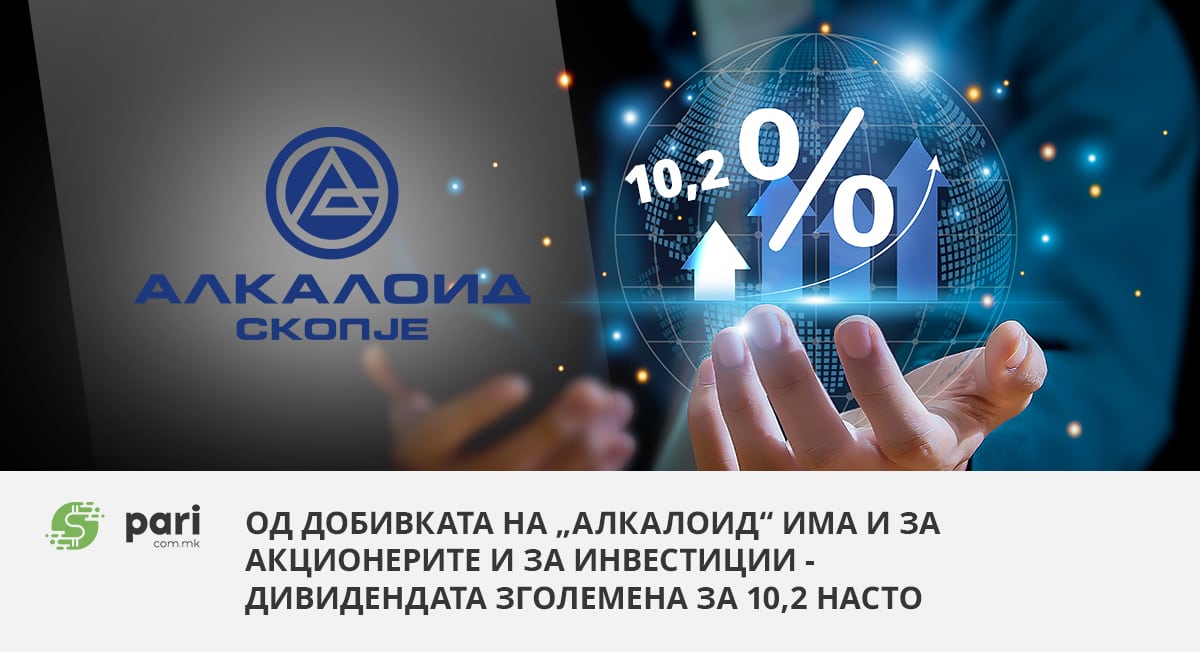 Добивката што „Алкалоид“ ја оствари со работењето во текот на минатата година, во износ од 24,68 милиони евра, речиси рамномерно ќе биде поделена на два дела. За дивиденда и данок за личен доход над 770 милиони денари (12,5 милиони евра) и за инвестиции – над 750 милиони денари (12,1 милион евра). Предлогот треба да добие потврда на акционерското Собрание закажано за први април.